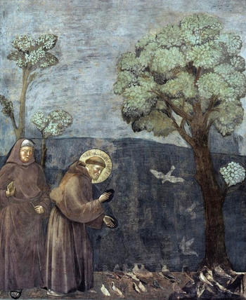 Mazākajiem brāļiem ziedotajā vientuļnieku mītnē Cesi di Terni, Francisks ieteica uzbūvēt baznīciņu pēc Asīzes Eņģeļu Dievmātes kapelas parauga. Priekšpusē, uz koka plāksnes, lika uzzīmēt dažādas radības un visdrīzāk pašrocīgi uzrakstīja dažus psalmus no Svētajiem Rakstiem un no liturģiskajiem tekstiem, kuri aicina uz goda atdošanu Dievam, kuru šodien pazīstam ar nosaukumu „Iedrošinājums Dieva slavēšanai”. Šī plāksne tika vientuļnieku mītnē ar cieņu glabāta vēl 15.gs. beigās un 16.gs. sākumā.